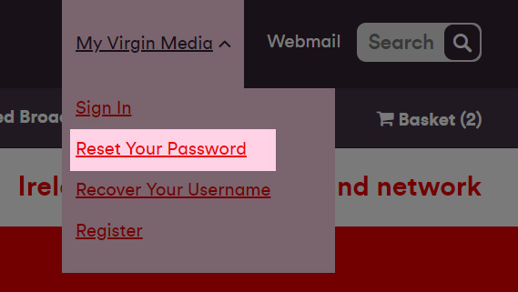 Click on: Reset your password from the My Virgin Media dropdown (near the top right of the screen). Or visit our reset password page.